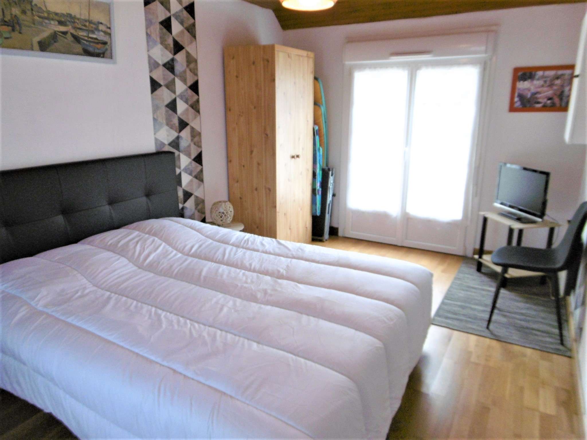 - Chambre 1 : 1 lit double en 160 avec rangement et télévision.